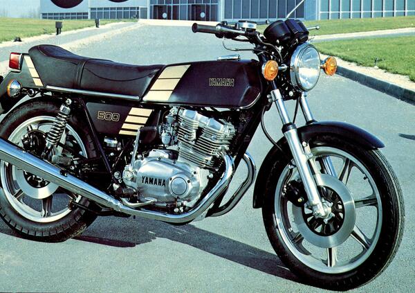 Ha fatto più parlare di sé la Yamaha XS 500 entrata in produzione un paio di anni dopo. Il suo motore era molto avanzato dal punto di vista tecnico, con due alberi ausiliari di equilibratura e, soprattutto, una distribuzione bialbero con quattro valvole per cilindro. L’albero a gomiti era monolitico, aveva le manovelle a 180° e lavorava su bronzine. I due alberi a camme, comandati da una catena laterale, azionavano le valvole per mezzo di bilancieri a dito sdoppiati.