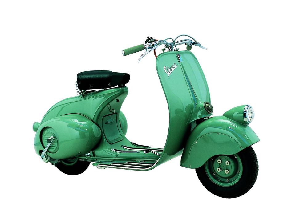 Il 23 Aprile 1946 Piaggio (fondata nel 1884) deposita il brevetto per “motocicletta a complesso razionale di organi ed elementi con telaio combinato con parafanghi e cofano ricoprenti tutta la parte meccanica”. È nata Vespa. Lo scooter motorizzato con un monocilindrico 2T da 98 cc è costruito nello stabilimento di Pontedera, in Toscana.