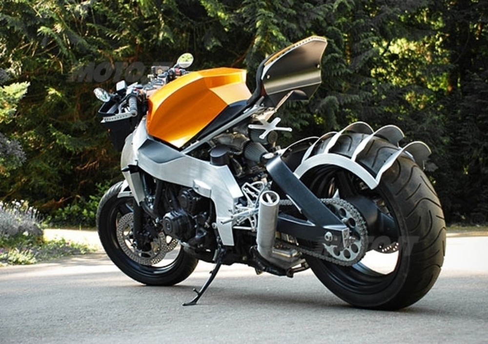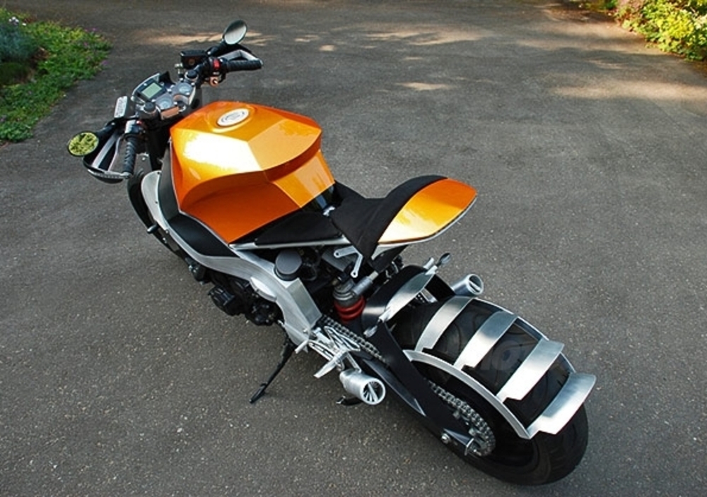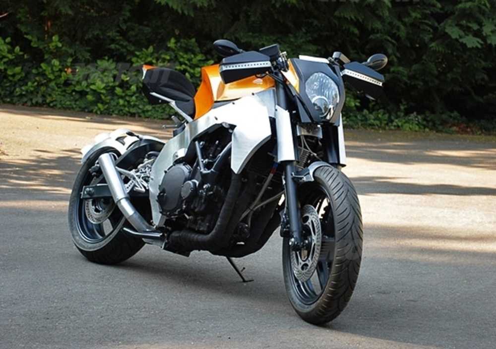 Lo statunitense Ian McElroy però crede molto nelle sue doti, e intraprendendo un progetto lungo quasi due anni ha trasformato una tranquilla turista di mezza età in una streetfighter cattiva, snella ed essenziale con più di un richiamo, nella linea se non nella sostanza, ai tratti tesi e spigolosi che Gerald Kiska ha tracciato sulle "sue" KTM. Non sappiamo se il tributo sia voluto o inconscio, ma se dovessimo scommettere diremmo che l'arancione scelto per serbatoio e codino (uniche sovrastrutture rimaste) non sia stato scelto a caso.