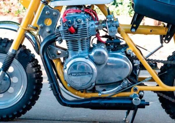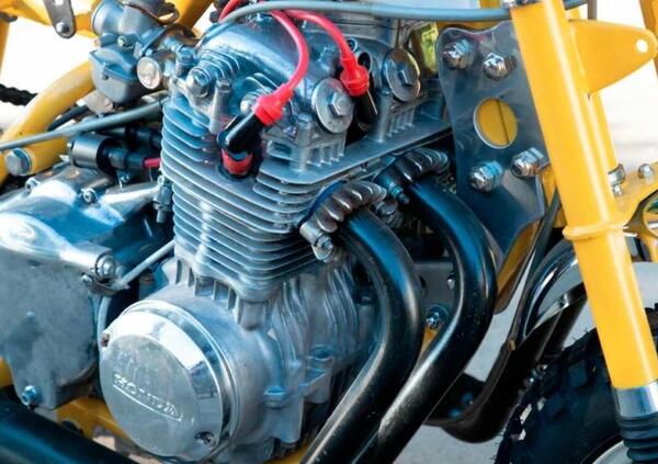Non crediamo sia un caso se il nome di questa special americana - proprio negli USA, ricordiamolo, è nato il detto "There's no substitute for cubic inches" - sia "Hold My Beer", ovvero "Tienimi la birra" mentre io, evidentemente, metto in pratica la folle idea che ci è venuta in questo momento. Boris "Bob" Guynes ha preso la ciclistica di una Honda Monkey, e ha adattato il telaio per ospitare il quattro cilindri in linea raffreddato ad aria di una Honda CB 500 Four, portando la potenza da 2,5 a circa 30.
