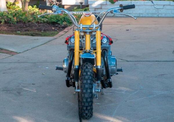 Vista la (poca) lunghezza degli scarichi, ma anche il diametro della corona posteriore, ci sentiamo facili profeti nell'immaginare momenti di terrore quando si apre il gas, montato su un manubrio da cross Tommaselli. La special è stata creata e venduta quasi immediatamente per la cifra di 5.000 dollari. Non potete immaginare quanto ci piacerebbe conoscere il seguito della storia...