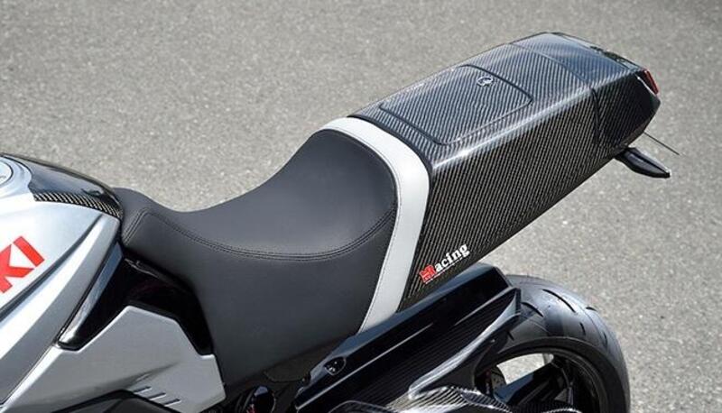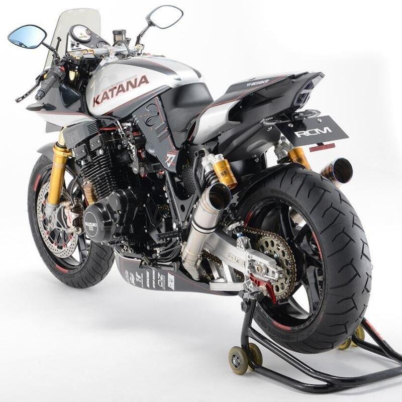 La trasformazione, che avvicina il design alla Katana 1100 del 1981, fa parte di un gruppo molto nutrito di accessori tra cui leggeri cerchi BST in carbonio, parafanghi nello stesso materiale o plexi più simili nel disegno a quelli dell'antenata, ma fa perdere il posto per il passeggero e ricava un vano portaoggetti ulteriore che per il taglio ricorda in chi scrive il faro a scomparsa di un'altra Suzuki, la 750 Shark. Per saperne (e vedere) di più potete dare un'occhiata direttamente al sito internet del produttore.