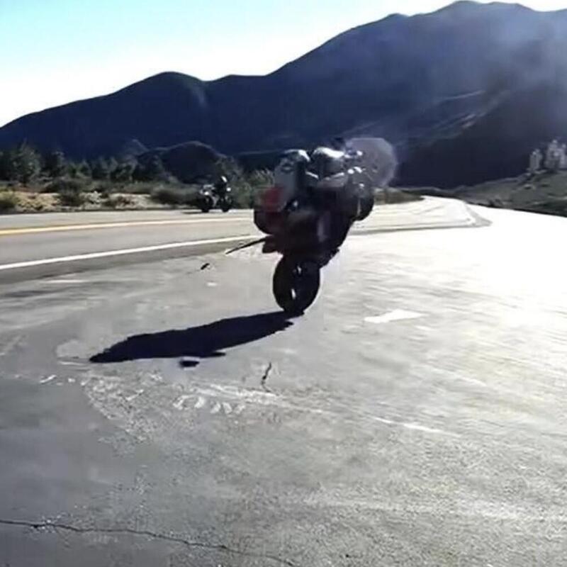 Impennare fino a grattare il casco per terra. Facile? Per niente! Impossibile? No, non per questo motociclista che, in un parcheggio vuoto e incitato dagli amici ("vai vai vai vai vai!") è riuscito a farsi riprendere mentre impenna fino a sdraiarsi e a far toccare il casco sull'asfalto.