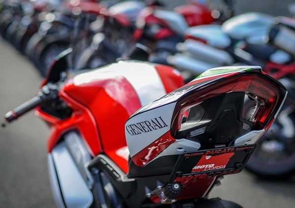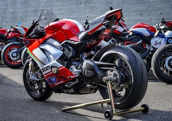 Colorata come la MotoGP Ducati guidata da Kentucky Kid nel 2012, questa Panigale è equipaggiata con componenti corsaioli quali lo scarico completo Akrapovic, il kit frizione a secco per la V4R, ruote BST in fibra di carbonio, sella, retrovisori e quant'altro figuri nel catalogo Ducati Performance.