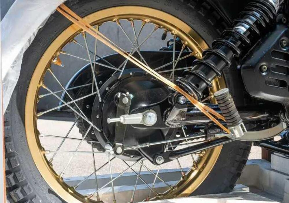 Un po’ come se fosse la protagonista di Ritorno al futuro. Bellissima, con il serbatoio cromato, le gomme ancora originali… insomma, una moto che per quasi quarant’anni è rimasta imballata e non ha mai toccato l’asfalto. Nonostante l’immatricolazione francese, il contachilometri segna zero.