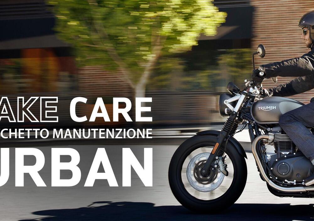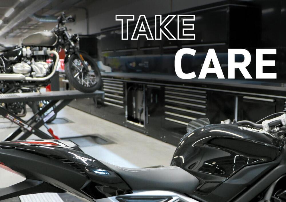 Il pacchetto Take Care per chi utilizza la moto con una percorrenza annua ridotta, ovvero inferiore a 10.000km o 16.000Km in 30 mesi. Sono inclusi: il primo tagliando e due tagliandi annuali come dal piano di manutenzione previsto da Triumph.