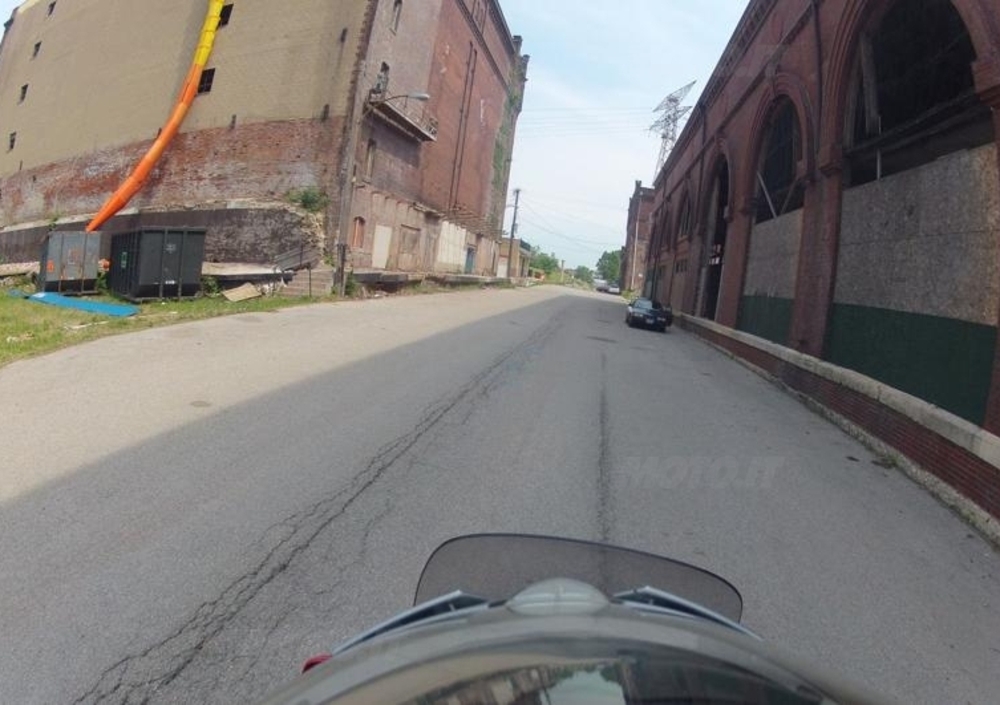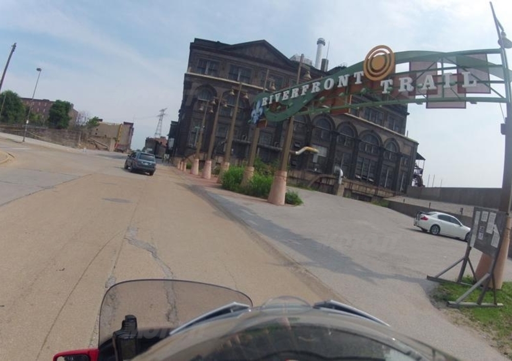 Dopo aver scattato qualche foto all'arco, ci siamo avventurati per una paio di miglia lungo la zona industriale del vecchio porto fluviale. Ci siamo giusto fermati un attimo per fare due foto ad effetto, dopodiché è bastato uno sguardo attorno per capire che non "era aria" e ci siamo rimessi in autostrada. Parola d'ordine: Kansas City, 450 Km ad ovest, tutti dritti, dico DRITTI, con un caldo umido da abbattere un elefante indiano. E il peggio doveva ancora arrivare, solo che per fortuna non lo sapevamo... Vi risparmio la descrizione della noiosa tappa di trasferimento, salvo la breve sosta per mostrare a Sandro la ridente Sweet Springs, Missouri. Questo piccolo villaggio ha lasciato in me un segno indelebile nel 2012 quando il BMW MOA Rally si è tenuto a poche miglia qui. Ricordo che un pomeriggio cercavamo un posto dove bere qualcosa e salvarci dalla canicola pomeridiana e siamo usciti proprio all'uscita di Sweet Springs sulla Interstate 40. Non c'era in giro nessuno, e l'unico locale aperto era di proprietà di una coppia di mezza età, che aveva deciso di aprire un bar dietro suggerimento dei loro pochi amici e conoscenti, in modo da avere almeno un punto di ritrovo.