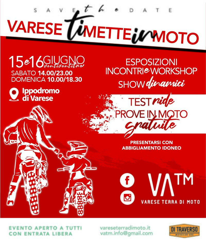 L'evento, pensato come un'iniziativa "dei motociclisti per i motociclisti", includerà mostre, esposizioni statiche delle Case produttrici e varie prove pratiche, test ride ed eventi spettacolari legati al mondo delle moto, come maxienduro, supermoto e flat track. Sarà inoltre possibile partecipare a scuole di guida per bambini e adulti. Per prendere parte alle attività pratiche e ludiche, è fondamentale indossare l'abbigliamento appropriato, non scordatelo a casa! Gli ingressi all'ippodromo saranno aperti sabato 15 dalle 14:00 alle 23:00 e domenica 16 dalle 10:00 alle 18:30, con accesso gratuito per tutti i visitatori. Maggiori informazioni su www.vareseterradimoto.it.