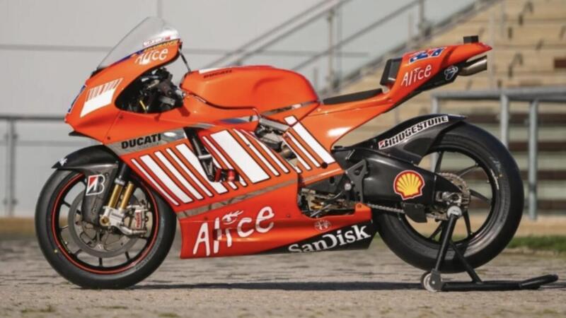Sempre all’interno di Iconic Auctioneers, un altro lotto ha riguardato la Desmosedici Gp7 con cui il Casey Stoner vinse il mondiale nel 2007, il primo di Ducati in questa categoria. Un campionato conquistato con 10 vittorie e che contribuii anche ad alimentare il mito attorno questo incredibile pilota, anche perché per conquistare nuovamente il titolo in MotoGp, Ducati ha dovuto attendere fino al 2020 con Bagnaia, poi replicato nel 2021 sempre con Pecco. Per questa moto il prezzo di scambio si è fermato a 477mila euro, una bella cifra non c’è che dire anche se è verosimile pensare che in futuro entrambe le moto potranno aumentare ancora il loro valore.
