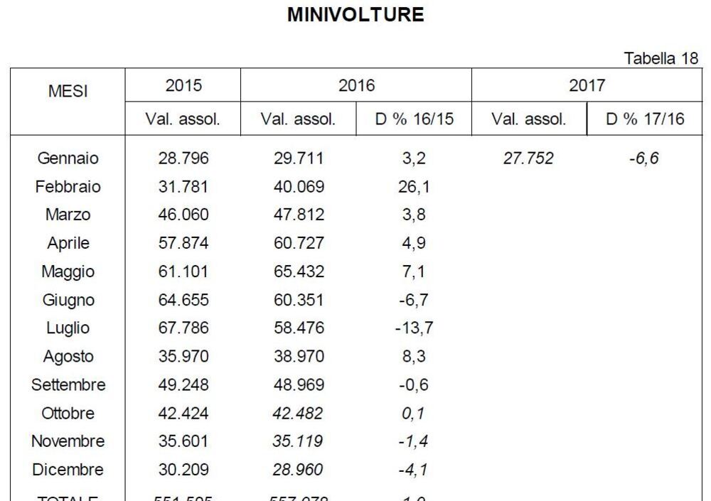 Come sempre consideriamo nei passaggi di proprietà solamente quelli netti, cioè depurati dalle minivolture. Queste ultime sono le registrazione al PRA di un passaggio di proprietà di un veicolo a favore di un concessionario, ai fini della rivendita a terzi. Il dato netto è significativo, in quanto l'incidenza delle minivolture sul totale dei passaggi di proprietà è stato a gennaio del 13,9%, anche se va ricordato che questa incidenza è molto superiore nel caso delle autovetture, essendo stato superato a gennaio il 41%.