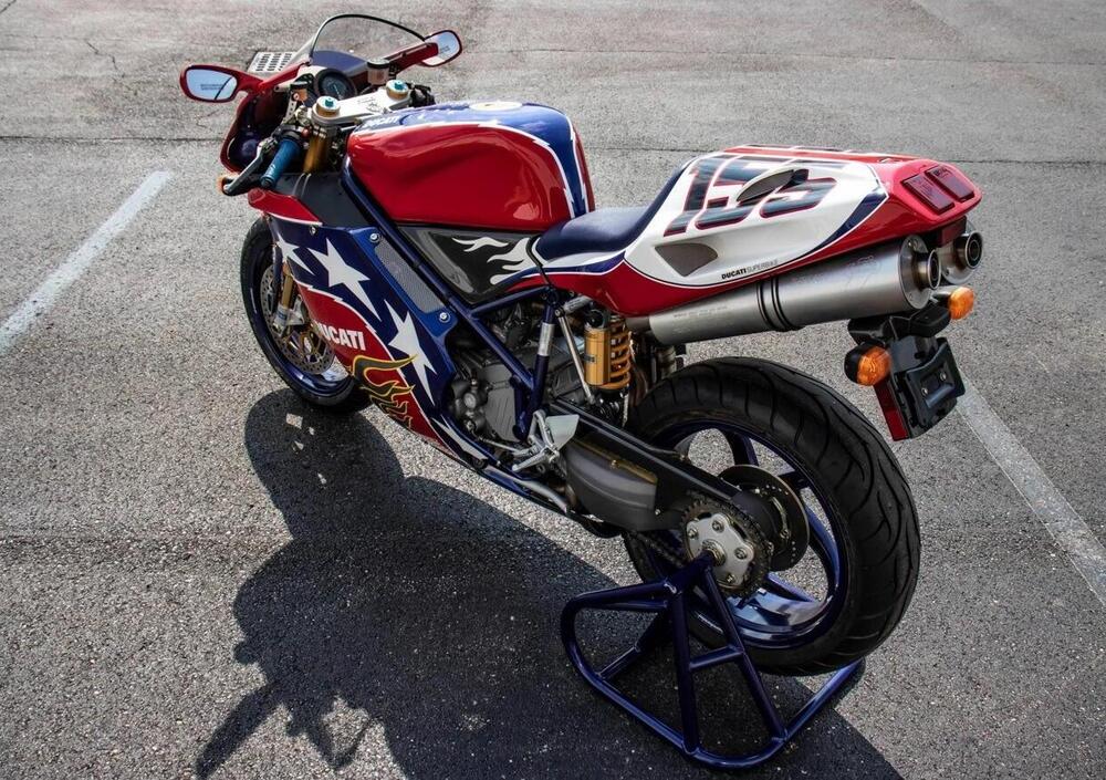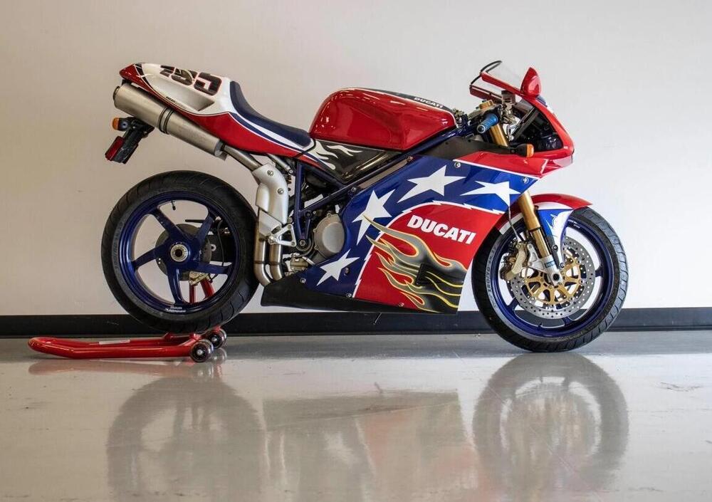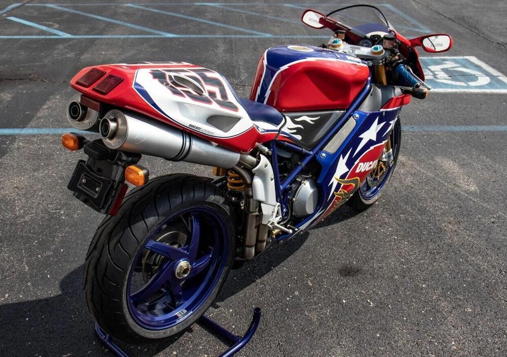 La moto era in vendita fino a ieri sul sito bringatrailer, specializzato in aste, ed è praticamente nuova: soltanto due miglia all'attivo, perfetta, con tanto di firma sul serbatoio e pneumatici dell'epoca calzati sui cerchi, rappresenta l'apice della dinastia iniziata con la 916: più prestigiosa di questa, ci sarebbe probabilmente soltanto la race replica 998 R, ma la livrea che riprende fedelmente la 996 portata in gara da Bostrom e le grafiche del suo casco aggiungono tanto fascino, l'esclusività dell'edizione limitata fa il resto e certamente non pochi appassionati avranno desiderato portarsi a casa una moto così unica che, se vogliamo, potrebbe ancora essere molto divertente con i suoi 136 cavalli per 187 kg, sospensioni Öhlins, cerchi Marchesini e... la totale assenza di controlli elettronici a imbrigliare il Testastretta e la ciclistica.