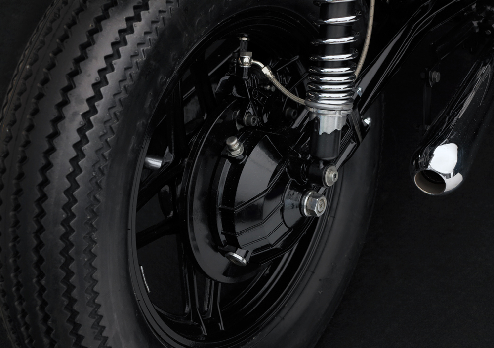 Trasmissione, motore, impianto frenante ed impianto elettrico sono stati completamente restaurati o sostituiti nelle componenti con elementi d’epoca mai utilizzati. La sella è stata rifatta partendo da un esemplare originale; il contagiri originale Veglia Borletti è stato ovviamente mantenuto ma integrato in nuovo supporto minimalista.