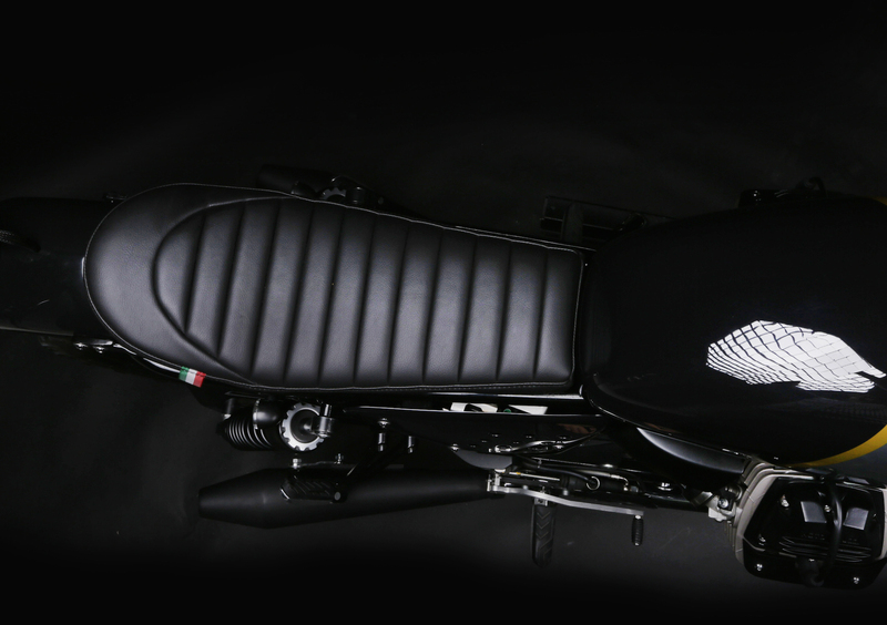 I coperchi valvole che hanno sostituito le unità plastiche sono d’epoca, mentre le protezioni per le teste sono state realizzate espressamente per questa special. Tutto l’impianto elettrico ed elettronico è stato razionalizzato e riposizionato, i fari sono unità del tutto nuove e la sella – realizzata a mano con bandiera italiana – rappresenta, come racconta orgogliosamente lo stesso Venier, il marchio di fabbrica del preparatore italoamericano.