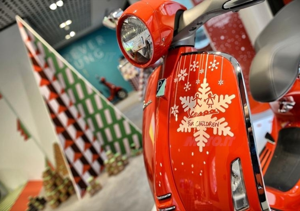 Protagonista dell'iniziativa è una Vespa 946 nell'esclusivo colore rosso. Fino ad ora, infatti, la collezione di Vespa 946 ha contemplato le sole colorazioni bianco e nero. La Vespa 946 rossa, decorata da grafiche in perfetto stile natalizio, può essere ammirata nello showroom del Gruppo Piaggio - che apre le sue vetrine nel cuore di Milano, in via Broletto 13 - in attesa di essere battuta all'asta per finanziare una iniziativa del programma Vespa for Children.