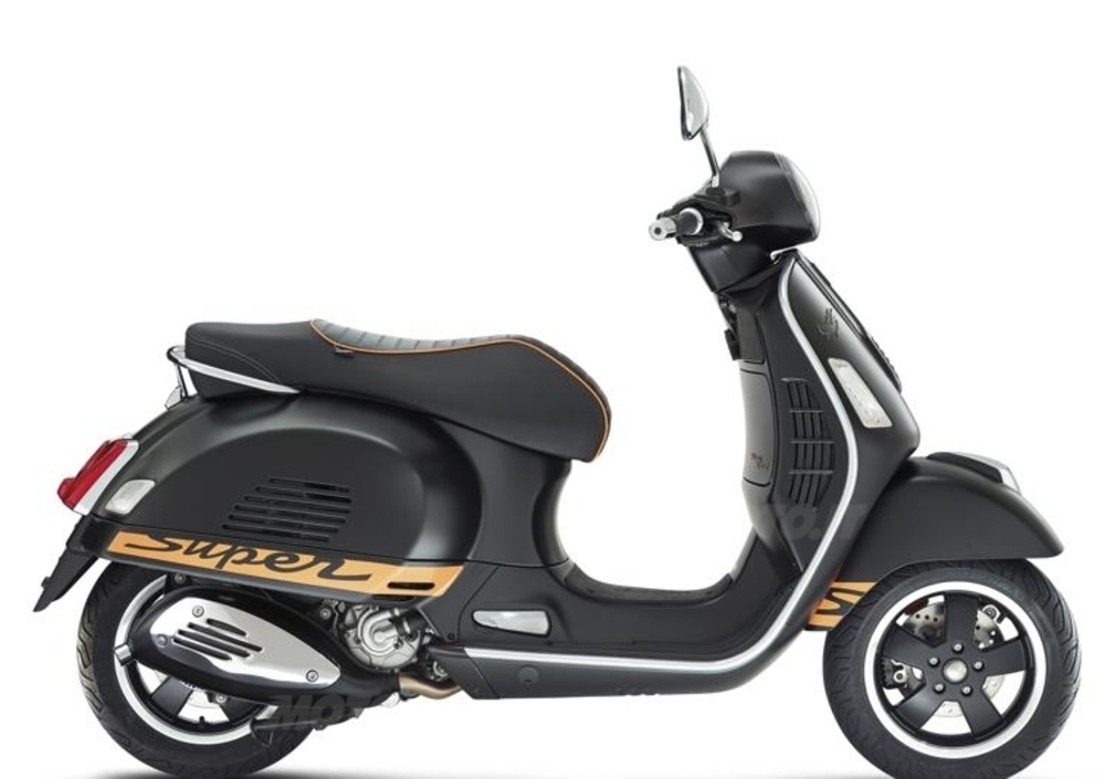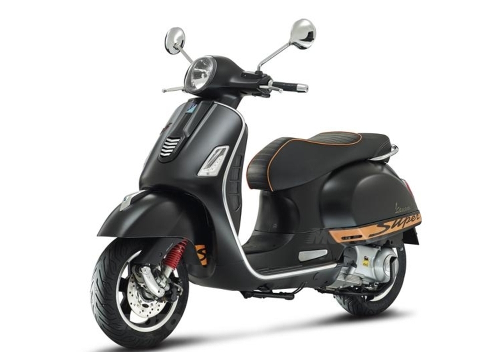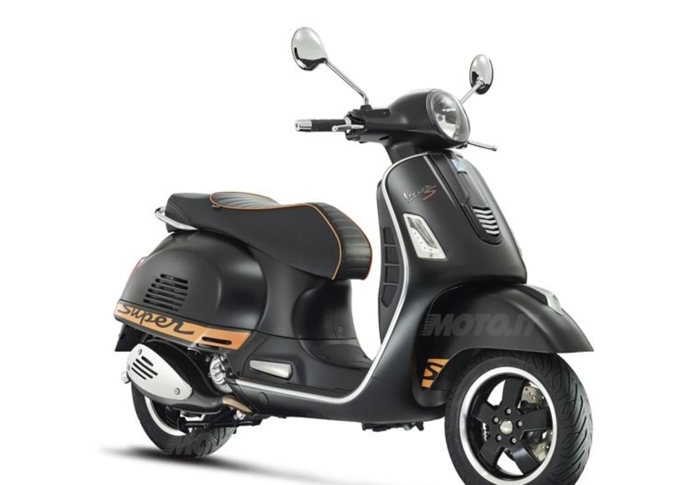 Sulla base della nuova Vespa GTS Super nasce la versione SuperSport, la Vespa più aggressiva di tutta la grande famiglia Vespa. La sua estrazione sportiva è resa evidente dall’esclusiva verniciatura nero opaco e da alcuni particolari come la sella dalle inedite cuciture, caratterizzata dalla rifinitura a filo arancione. Dello stesso acceso colore sono anche le inconfondibili grafiche sulle fiancate laterali del corpo, come sempre costruito in acciaio, il logo applicato sul controscudo e la lettera “S” che capeggia sullo scudo anteriore.
