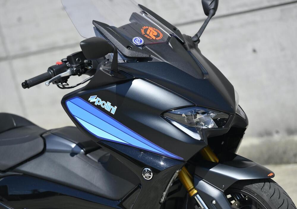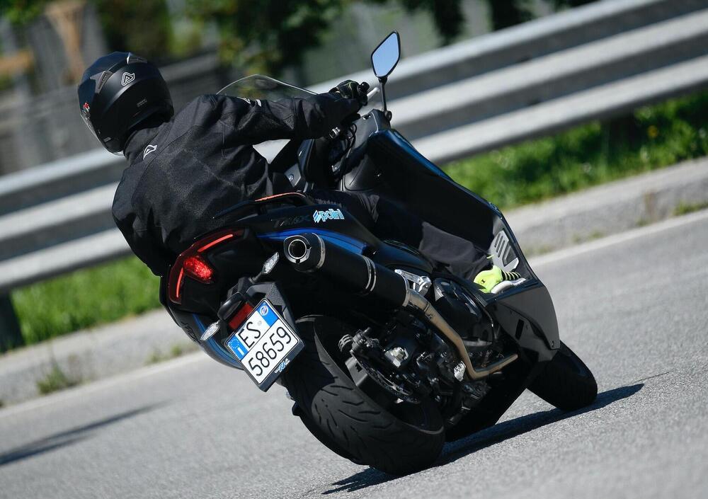 La prima cosa che colpisce una volta avviato il T-Max 560 kitttato Polini è il sound del suo bicilindrico che diventa più "balordo", corposo, tuonante grazie al nuovo impianto di scarico (Il codice è 190.0067 ed ha un prezzo di 687,10+IVA). Il gruppo trasmissione MAXI HI SPEED consente un'erogazione più vigorosa in partenza tra i 3.000 e i 5.000 giri, allungando in progressione fantastica fino ai 7.000 da dove parte la zona rossa. Come prestazioni, la velocità massima superiore di circa 10 km/h in più anche se a sorprendere è soprattutto lo spunto a 80-100 km/h che permette sorpassi rapidi e sicuri. La trasmissione Polini si distingue anche nel traffico intenso con il T-Max che riprende sempre con prontezza e senza strappi.