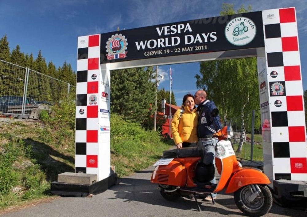 Vespa World Days è stato, anche per questa edizione 2011, un appuntamento atteso da tanti, un evento che ha coinvolto migliaia di persone e ha appassionato i nomadi Vespisti come i tanti norvegesi incuriositi e sbalorditi dalle tantissime Vespa. La storia più incredibile quest’anno forse però l’hanno scritta una coppia di novelli sposi di Montemarciano vicino Ancona che a Fatima nel 2010 ha pianificato le nozze a una settimana dal mega raduno di Vespisti così da iniziare la loro luna di miele proprio ai Vespa World Days 2011 di Gjøvik.
