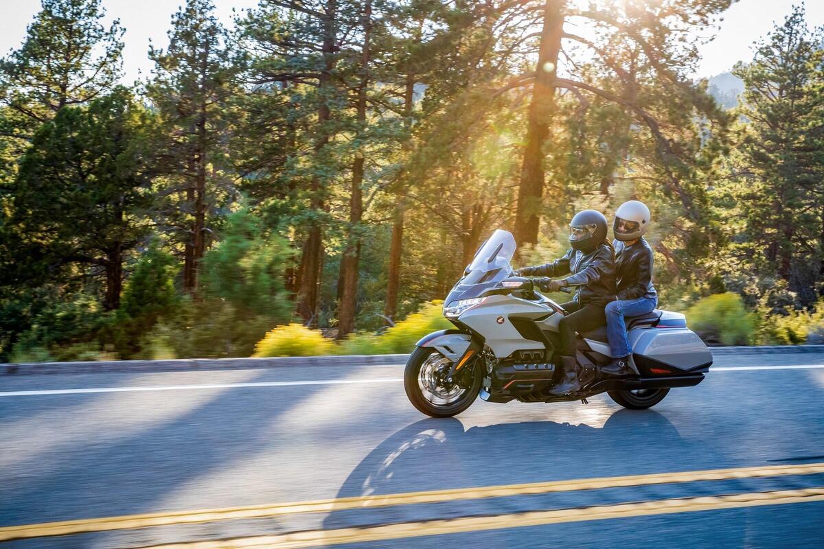 Alzi la mano chi non pensa subito alla Gold Wing quando si parla di viaggiare in totale comfort: l'ammiraglia della produzione Honda è sulla breccia da oltre 45 anni e l'ultima rinnovata versione del 2021 ne è l'espressione più raffinata e avanzata. La Gold Wing GL1800 dal 2021 è disponibile sul mercato italiano in 2 modelli: il modello base GL1800 Gold Wing è dotato di valigie laterali e parabrezza standard mentre la versione Tour prevede il top box e il parabrezza alto. Entrambe sono mosse dal monumentale motore boxer a 6 cilindri di 1.833 cc, 4 valvole con testate Unicam da 126 CV a 5.500 giri/min e una coppia massima di 170 Nm a 4.500 giri/min. Dotazione al top, ovviamente, con il plus del cambio DCT a sette rapporti (per le versioni che lo prevedono) e della sospensione anteriore a doppio braccio oscillante e ammortizzatore centrale. Il peso con il pieno della versione Tour è di 379 kg, mentre il prezzo (sempre della versione Tour) parte da 33.790 euro f.c. (37.890 con DCT e Airbag). Qui sotto vi proponiamo la prova della versione 2018.