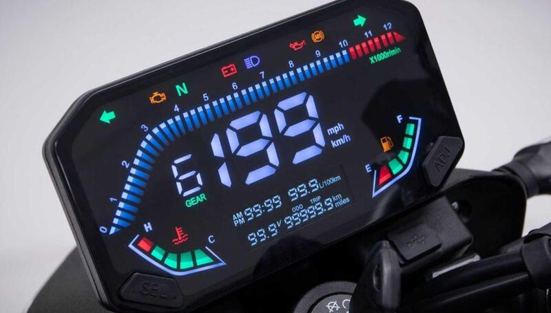 L'estetica è decisamente sportiva, con il profilo slanciato in avanti che per prima ha imposto la Duke KTM, e l'equipaggiamento conta su luci full Led (il faro con due luci DRL ha un disegno che ricorda le ultime streetfighter giapponesi), strumentazione con pannello Lcd di generose dimensioni, presa Usb ai lati del display, forcella a steli rovesciati e ammortizzatore posteriore centrale.