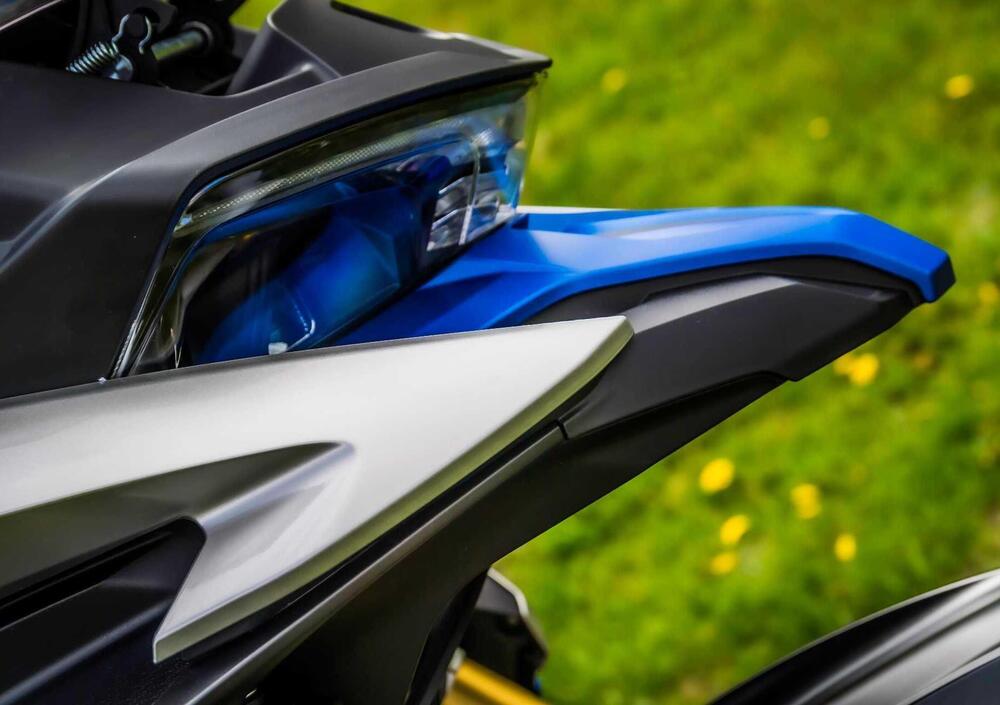 La nuova Valico 525DSX è tutta inedita, sia esteticamente che dal punto di vista tecnico. Dal lato del design, VOGE inaugura un corso stilistico che caratterizzerà anche tutti i futuri modelli, alla ricerca della migliore protezione aerodinamica grazie ai convogliatori raccordati con il serbatoio da 16,5 litri e affiancati dai paramani e dal cupolino regolabile manualmente con escursione di 70 mm. Nella zona posteriore troviamo il silenziatore dotato di fondello e cover con effetto in fibra di carbonio montato in posizione alta per offrire maggiore luce a terra.