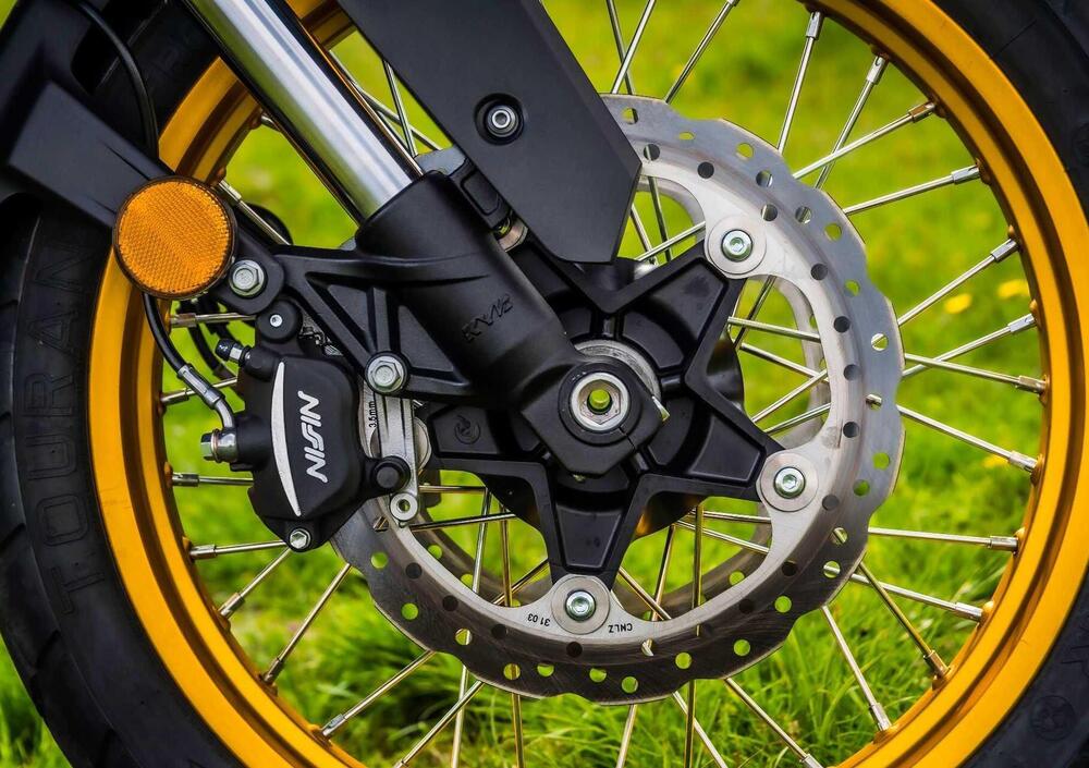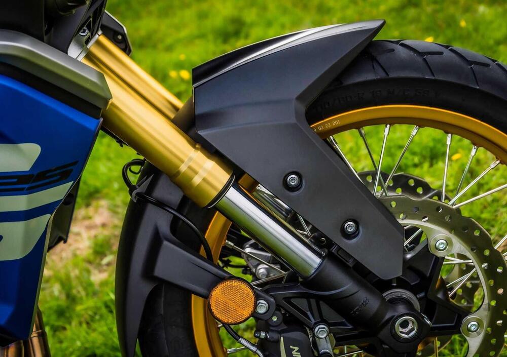 Sul fronte ciclistico troviamo un telaio a traliccio in acciaio, che sfrutta il motore come elemento stressato, con telaietto posteriore imbullonato e dotato di una forcella a steli rovesciati di 41 mm di diametro e 150 mm di escursione, mentre al posteoriore c'è un mono ammortizzatore con precarico regolabile e leveraggio progressivo. L'interasse è pari a 1.450 mm, le ruote a raggi sono tubeless e calzano pneumatici Metzeler Tourance da 110/80 – 19” e 150/70 – 17”. L’impianto frenante firmato Nissin è composto da una coppia di dischi anteriori da 298 mm di diametro con pinze a doppio pistoncino e da un disco posteriore da 240 mm di diametro sul quale lavora una pinza a singolo pistoncino. Il peso di 194 kg a secco, la sella posizionata a 815 mm da terra.