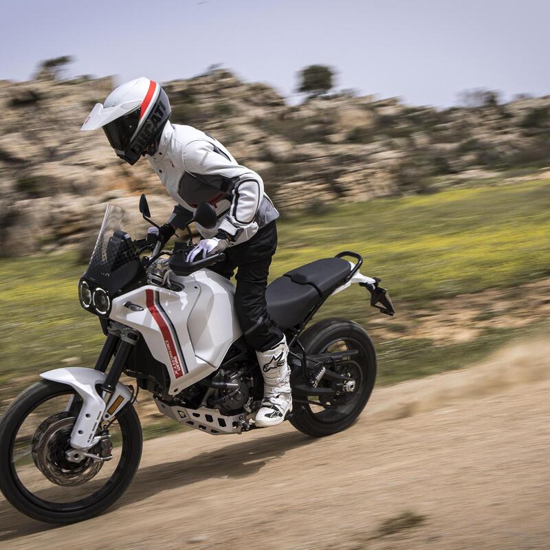 La nuova Ducati DesertX, con la sua ruota anteriore da 21 pollici, le sospensioni a lunga escursione e l'ampia luce a terra, è stata progettata per affrontare anche l’off-road più impegnativo e ha riscosso sin dalla sua presentazione online molto interesse.