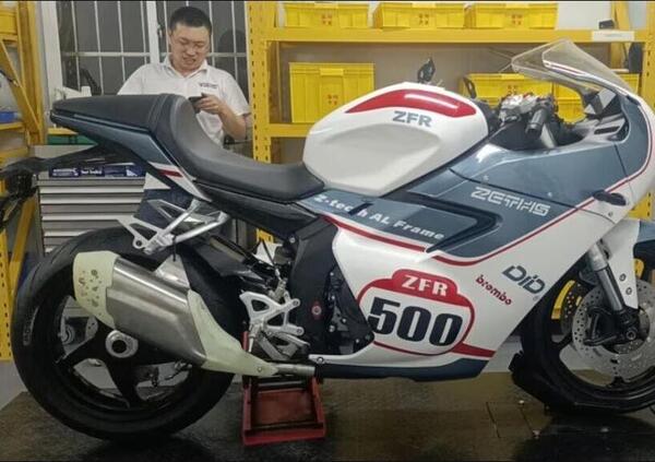 Nelle ultime ore invece una sospetta "fuga di notizie" ha fatto circolare in rete le immagini che vi mostriamo e relative alla ZFR 500 R, una moto della quale non si sapeva e - almeno in teoria - non si sa nulla. Le sue linee e lo stadio avanzato di prototipazione però ci lasciano presupporre che sia prossima alla produzione. La motorizzazione non è certa, ma la scritta 500 sulla carena e le dimensioni farebbero supporre si tratti di un bicilindrico in linea, ipotesi suggerita anche dai colleghi tedeschi di Motorrad.