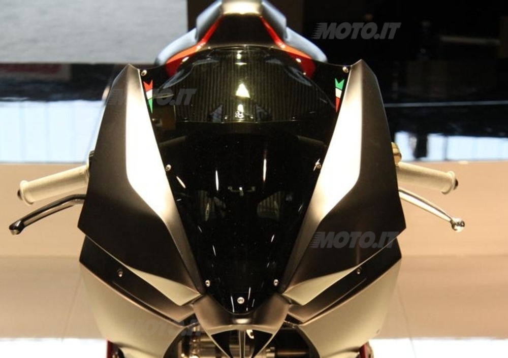 Lo scarico disegnato nella tradizionale configurazione 4 in 2 in 1, finisce con un silenziatore a due uscite separate con forma a V posto sotto la sella proprio dietro il motore, è ben riparato non influisce sulla sospensione posteriore e rappresenta ancora una novità nel panorama scarichi ormai avaro di nuove soluzioni da molto tempo. I tubi possono essere sia nel tradizionale acciaio che nel più raffinato titanio, il silenziatore è in acciaio e il suo involucro è in carbonio per alta temperatura.