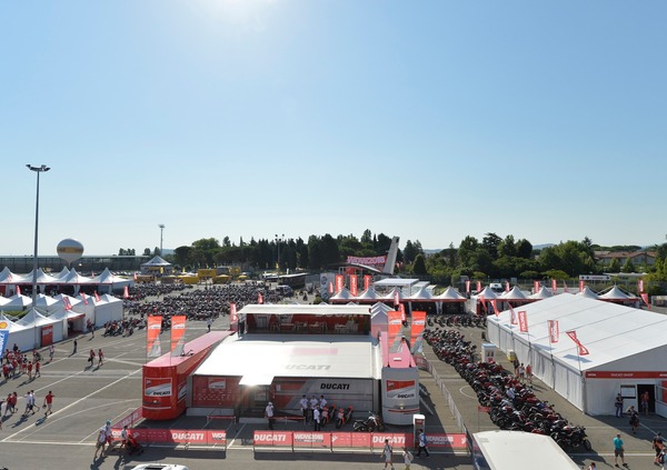 Una grande festa. Un rituale, quasi una liturgia, che ogni due anni si ripete puntualissimo sul circuito di Misano - l'ex Santamonica, ora intitolato all'indimenticato Marco Simoncelli - dove confluiscono Ducatisti da tutto il mondo per celebrare insieme la passione per la rossa di Borgo Panigale in tre giorni di feste, gare, condivisione.