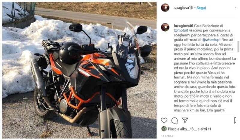 Interessati? Scommettiamo di sì. Cosa dovete fare per partecipare? Mettere mano ai vostri social per convincerci che siete quelli giusti, che la vostra passione merita di vivere questa esperienza per crescere e affinarsi! Postate una foto o un video sulle vostre pagine Instagram o Facebook utilizzando l'hashtag #wheelup4you, taggate Moto.it (IG: @motoit, FB: @moto.it) e Wheelup (@wheelup.it per IG e @wheelup per FB) e fatelo tassativamente entro il 25 aprile!