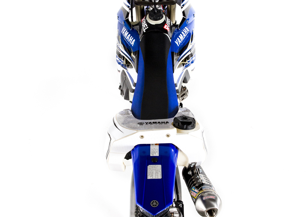 I fari sono a led da 50 watt cad. e montati all’interno di un’apposita conchiglia per evitare effetti di riflesso sul cupolino. Quest’ultimo è diviso in tre sezioni e stampato in plastica abs e plexiglass trasparente per favorire un’ampia visibilità al pilota ed è montato con 6 sganci rapidi senza necessità di alcuna chiave dedicata. Il terminale di scarico è stato ridisegnato dopo diversi test al banco prova per migliorare ulteriormente le prestazioni del motore ai bassi e agli alti regimi e la stessa centralina ha subito delle modifiche per rendere al meglio nei percorsi Rally dove le velocità sono mediamente molto più alte rispetto all’enduro classico. Proprio per sostenere al meglio le velocità più elevate è stato aumentato anche il diametro del disco anteriore a 270mm, montato tramite un apposito supporto. La batteria al litio da 14Ah con il peso di soli 700g assicura un’efficienza senza eguali migliorando la messa in moto elettrica e fornendo al tempo stesso potenza sufficiente per alimentare contemporaneamente porta roadbook, Gps, Iritrack ed altri strumenti come ripetitori ed antenne senza il rischio di rimanere con la batteria a terra. I serbatoi e parte del cupolino sono rivestiti con adesivi in crystal ad altra resistenza per proteggere il mezzo da eventuali graffi e per dare a WR450F Rally un look aggressivo dal carattere Racing.