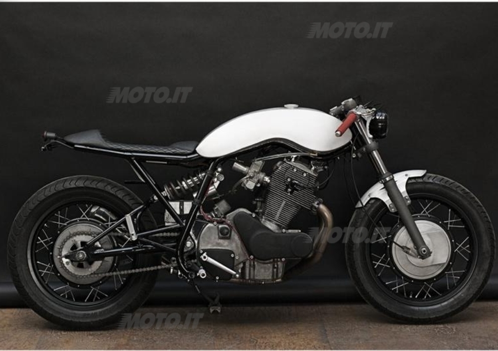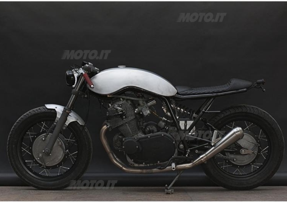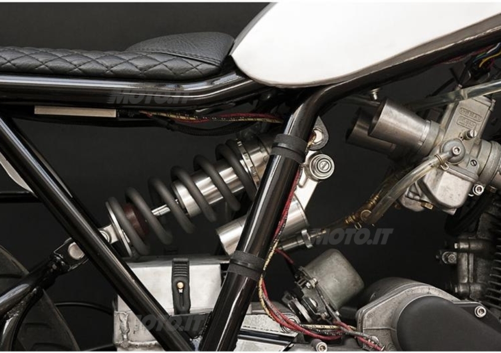 Componentistica standard anche per freni, mozzi e cerchi da 18" (in alluminio) con raggi in acciaio inox. Le gomme sono Pirelli BT 45. Il resto della componentistica - supporti fari, alloggiamento batteria e cablaggi - sono realizzati per lo scopo da Wrenchmonkees.