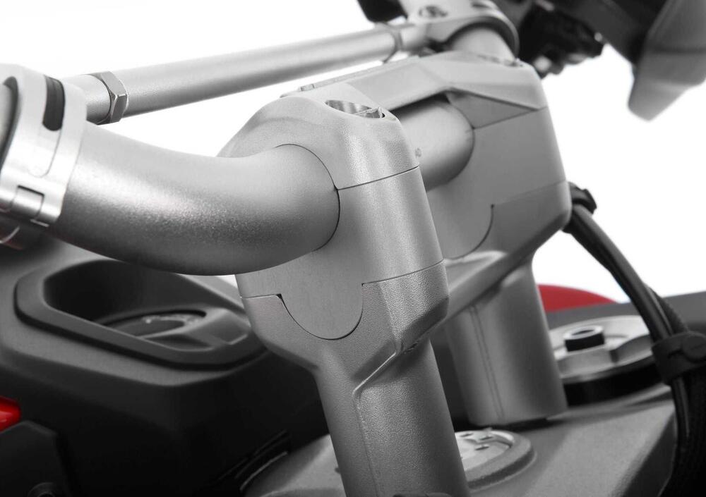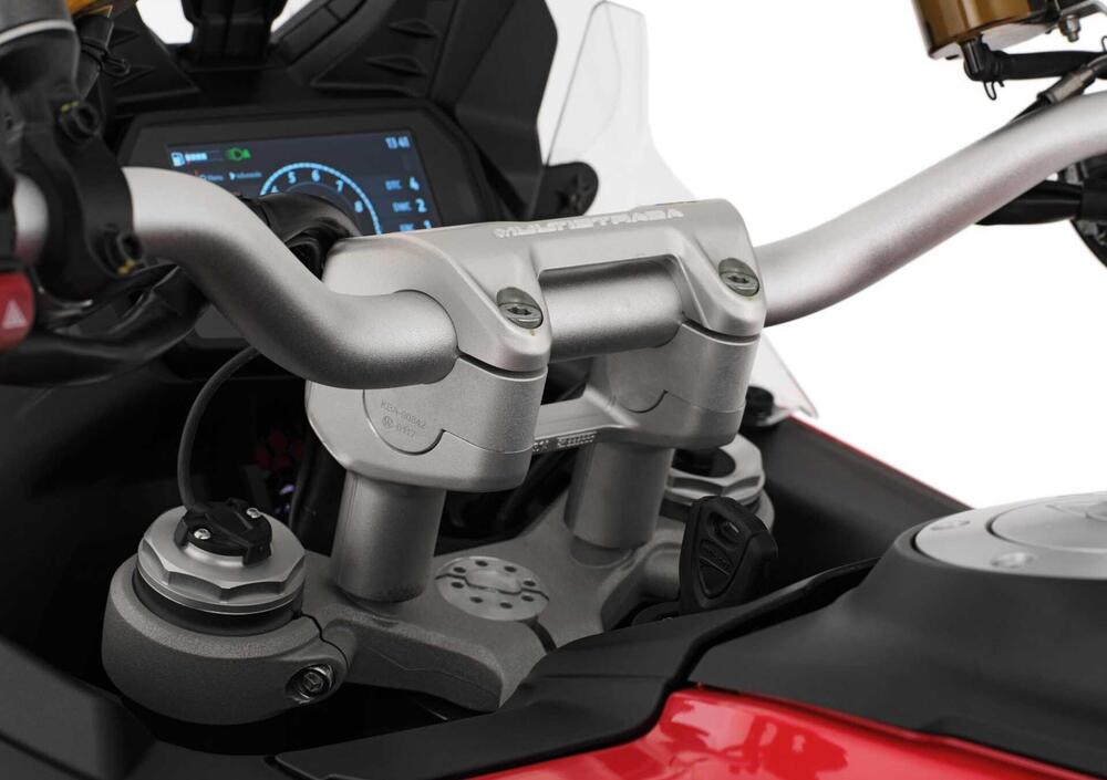 Il nuovo rialzo manubrio Ergo by Wunderlich aumenta l’altezza del manubrio della Ducati Multistrada V2 di 25 millimetri. migliorando ergonomia e postura di guida. Ideale per chi percorre lunghe distanze o semplicemente desidera una posizione più comoda e rilassata, questo accessorio riduce la fatica muscolare su schiena, collo e spalle, migliorando la visione del traffico e il controllo generale. Il montaggio è semplice, senza modifiche, grazie al kit completo fornito.