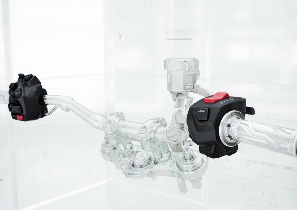 I cambi sono regolati con l'indice e il pollice, tramite due leve: una leva con il simbolo "+" per le marce superiori e una leva con il simbolo "-" per le marce inferiori. Per un maggiore controllo nella guida più sportiva, è possibile tirare la leva con il simbolo "+" per sollevarla e spingerla verso il basso solo con l'indice, il che offre una maggiore libertà, in quanto non è necessario rimuovere il pollice dal manubrio. Le dimensioni, la posizione e la corsa della leva sono state progettate per essere utilizzate con i guanti, il che significa che è necessaria solo una minima quantità di movimento delle dita per azionare i cambi.