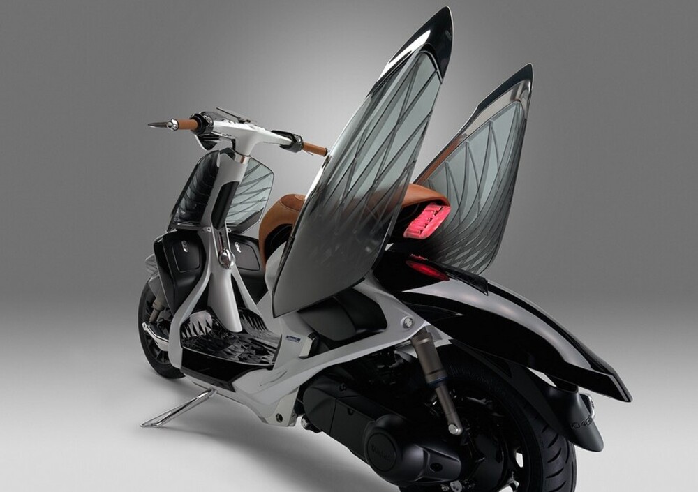 Le sovrastrutture in plastica semitrasparente si alternano alla fisicità della parte telaistica. All'avantreno ci sono una forcella di tipo Earles e un freno a disco carenato. La sella appare sospesa (come sulla vespa 946) e i gusci laterali si alzano come le ali di un cigno. Nel suo comunicato stampa Yamaha lo descrive così: “Con la trasparenza mostra la bellezza ingegneristica dando leggerezza a un corpo maestoso, un design che sintetizza esterno ed interno per ottenere una bellezza rara”, e ancora “Evoca un'immagine femminile, con la sua aria elegante e la grazie di mente e corpo”.