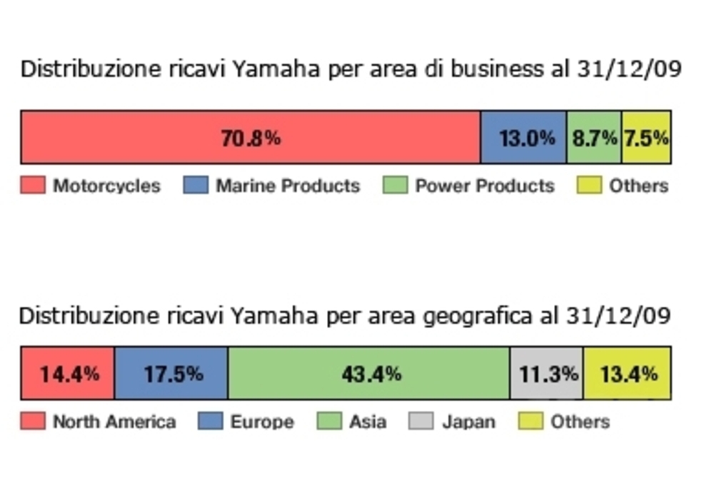 Yamaha Motor, secondo produttore mondiale di moto dopo la Honda, ha rilasciato in questi giorni una serie di comunicati e gli ultimi dati finanziari del Gruppo. La crisi internazionale e la supervalutazione dello Yen sono state tra le cause principali del peggior anno della storia dell’azienda giapponese, in netto contrasto con i brillanti risultati ottenuti in ambito sportivo. Il dato più importante riguarda la riduzione del volume di affari su scala mondiale, sceso del 28,1% rispetto al 2008: una riduzione di 450,2 miliardi di yen (c.ca 5 miliardi di dollari), su un volume d’affari totale pari a 1.153,6 miliardi di Yen, c.ca 13 mld di dollari (erano 1.603,9 mld di Yen nel 2008).