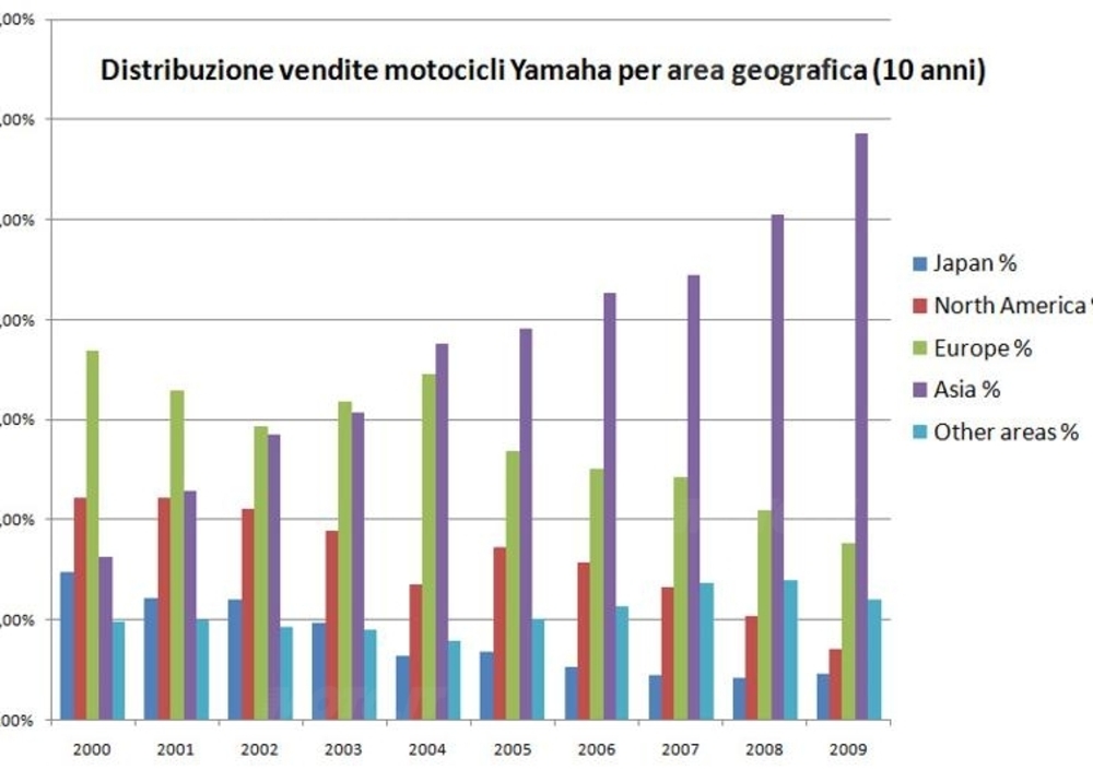 Yamaha Motor ha però previsto, attraverso un piano industriale e finanziario suddiviso in 2 fasi operative (2010 e 2012), di passare da una perdita operativa consolidata del 2009 di 62,6 miliardi di Yen (c.ca 700 mln di dollari) ad un risultato operativo consolidato positivo nel 2010 pari a 10 miliardi di Yen (110 mln di dollari), su un volume d’affari complessivo previsto di 1.250 miliardi di Yen (c.ca 14 miliardi di dollari). E di alzare ulteriormente il risultato operativo consolidato nel 2012 a 70 miliardi di Yen (775 mln di dollari) con un volume di affari pari a 1.400 milardi di yen (15,5 mld di dollari).