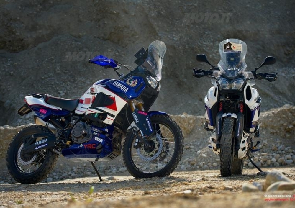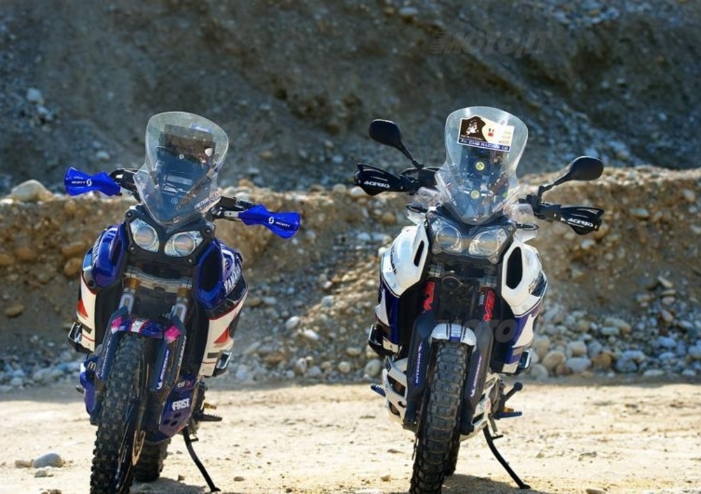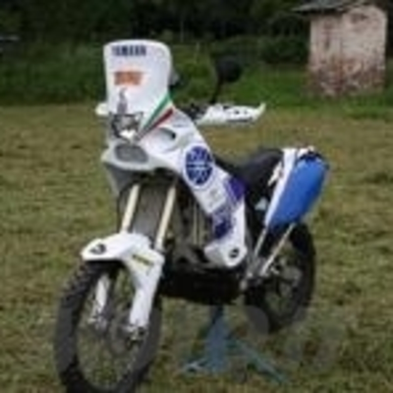 Nella fotogallery potete vedere due moto, quella verniciata in bianco e blu è la moto personale di Christian. E' una SuperTénéré modificata per un fuoristrada relativamente spinto, alleggerita comunque di una quindicina di chili rispetto all'originale e dotata di serbatoio aggiuntivo posteriore da 13,5 litri, in alluminio e autocostruito.