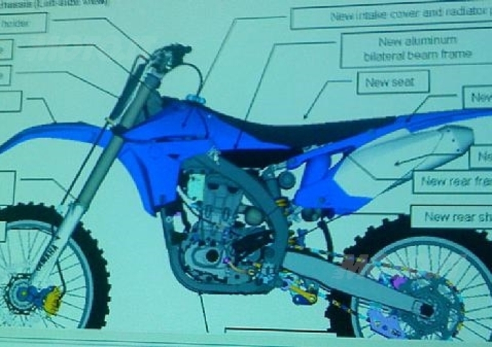 Le nuove YZ-F attese nella prossima stagione adottanno nuove plastiche, che alleggeriscono in particolare la zona centrale della moto, ora priva della scatola del filtro dell'aria.