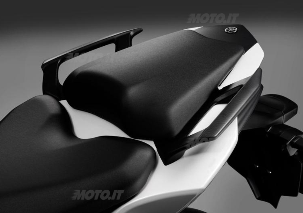 Il nuovo quadricilindrico Yamaha adotta un silenziatore molto corto montato sul fianco, a valle dello scarico “4 in 2 in 1” con convertitore catalitico a nido d’ape posizionato al punto di congiunzione dei collettori. Ovviamente, una sonda lambda fornisce informazioni in tempo reale alla centralina, per regolare istante per istante la miscela aria/carburante, ottimizzando l’efficienza e riducendo le emissioni.