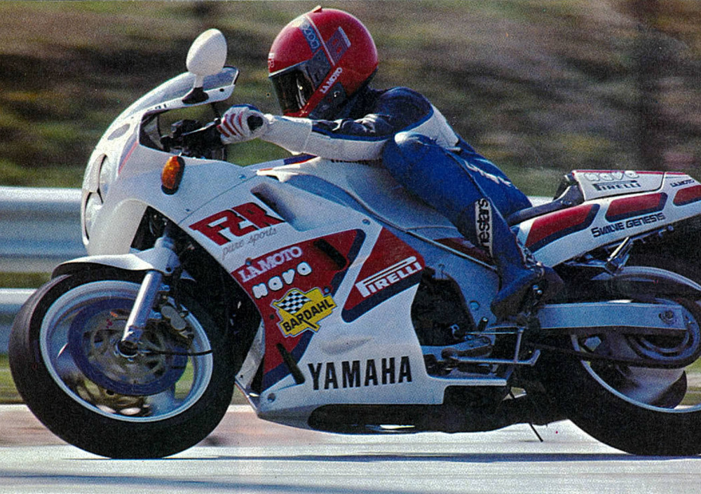 Il motore Genesis da un litro di cilindrata è forse quello che finora (non abbiamo ancora provato bene la Honda CBR) ci è piaciuto di più nella sua categoria: giudichiamo validissimi sia il Suzuki GSX-R che il Kawasaki RX, tuttavia il primo vanta talmente tanti cavalli nelle prime fasi di erogazione da mettere a volte in difficoltà, da sembrare addirittura brutale; il secondo, al contrario, elargisce la potenza più pigramente in basso per privilegiare gli alti regimi. Il motore della FZR si avvicina forse maggiormente a quello della Kawasaki, ma rispetto a quest'ultimo vanta un'erogazione più fluida, una curva di potenza più lineare: aprendo il gas in quinta, infatti, appena superata la soglia dei 2.000 giri il tiro si fa dolce e potente fino a quasi quota 7.000, dove l'entrata in coppia diventa vigorosa per raggiungere senza fatica la soglia d'intervento del limitatore di giri, poco oltre gli 11.500 indicati. Un comportamento quindi dissimile da quello della nervosetta FZ 750, ma più pacato e possente. Avallato da un cambio con una prima molto lunga, seconda, terza e quarta più ravvicinate tra loro ed una quinta marcia anch'essa un po' lunghetta (non valeva la pena di usare un "6 marce"?), il potente quadricilindrico Yamaha spinge la FZR rapidamente a raggiungere i 260 di tachimetro, per poi toccare i 270 con un lancio maggiore, dopo aver "tirato" la prima fino a 110, la seconda a 175, la terza a 220 e la quarta a 250! Ma non si spaventi colui che, pur dotato di esperienza motociclistica limitata ma innamorato del mezzo, volesse acquistare la FZR: questo motore che sa essere docile e divertente anche per andare a spasso e, come vedremo, è anche generalmente parco nei consumi.
