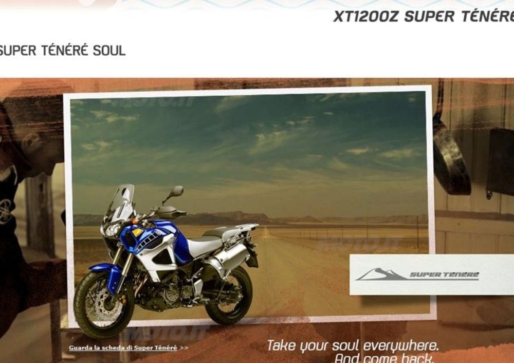 Il sito Yamaha-Motor.it è bello e coinvolgente. Non parla soltanto della gamma Yamaha. Non soltanto di moto e scooter, ma soprattuto di viaggi, passione e ricordi. Il video del Super Ténéré introduce una nuova filosofia della casa e ti porta in un mondo che affascina. La voglia di partire e viaggiare la fa da padrone.