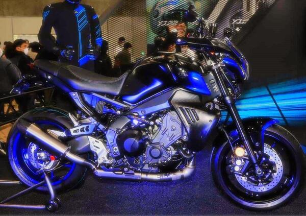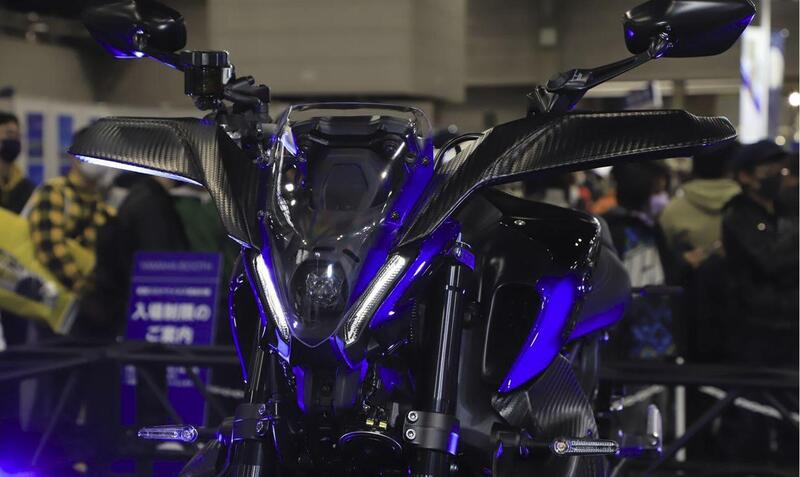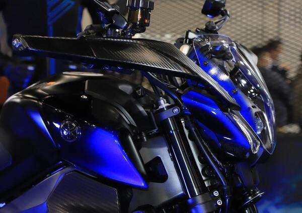 Il cupolino stesso è stato completato da una “plexi” trasparente e nella vista laterale di questa MT-09 risaltano estese coperture per il radiatore.
