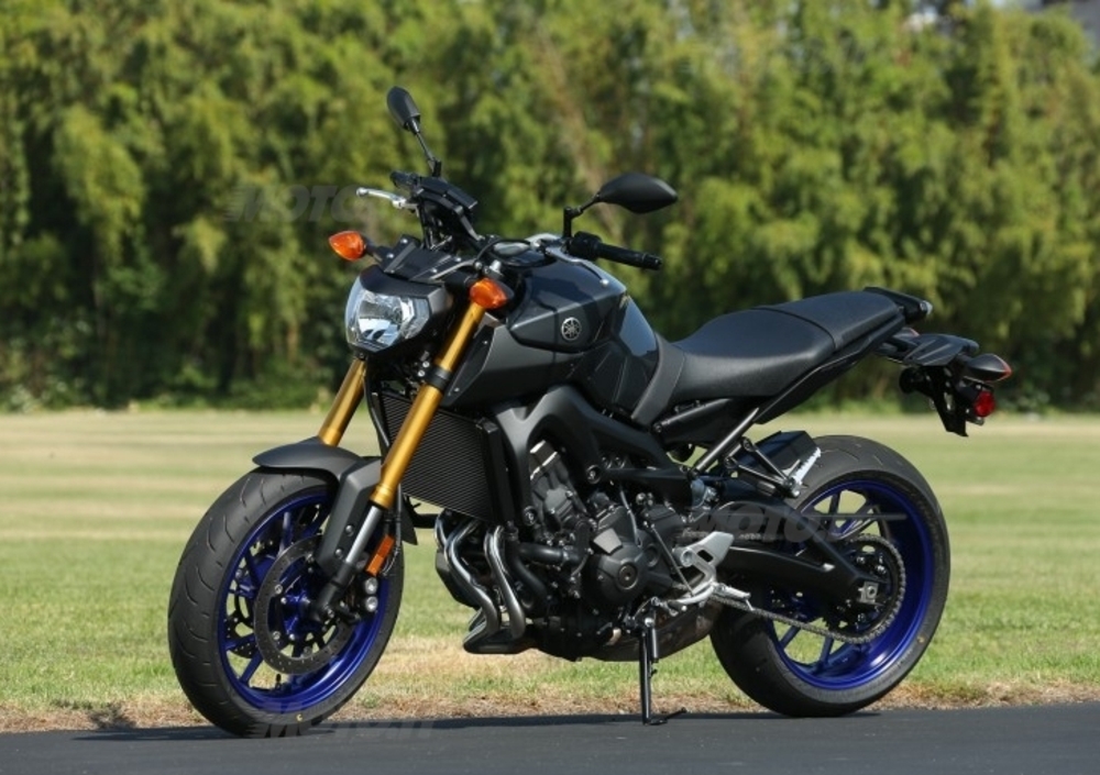 Le differenze fra le due versioni, europea e americana, oltreche nelle sigle sono nei cromatismi. Sulla FZ-09 il telaio è verniciato di nero e - per ragioni di normative - le frecce non hanno il vetro bianco; poi la forcella ha gli steli anodizzati oro per tutte le colorazioni disponibili per la carrozeria, mentre i carterini laterali del motore hanno un contrasto più vistoso rispetto al nero dei carter.