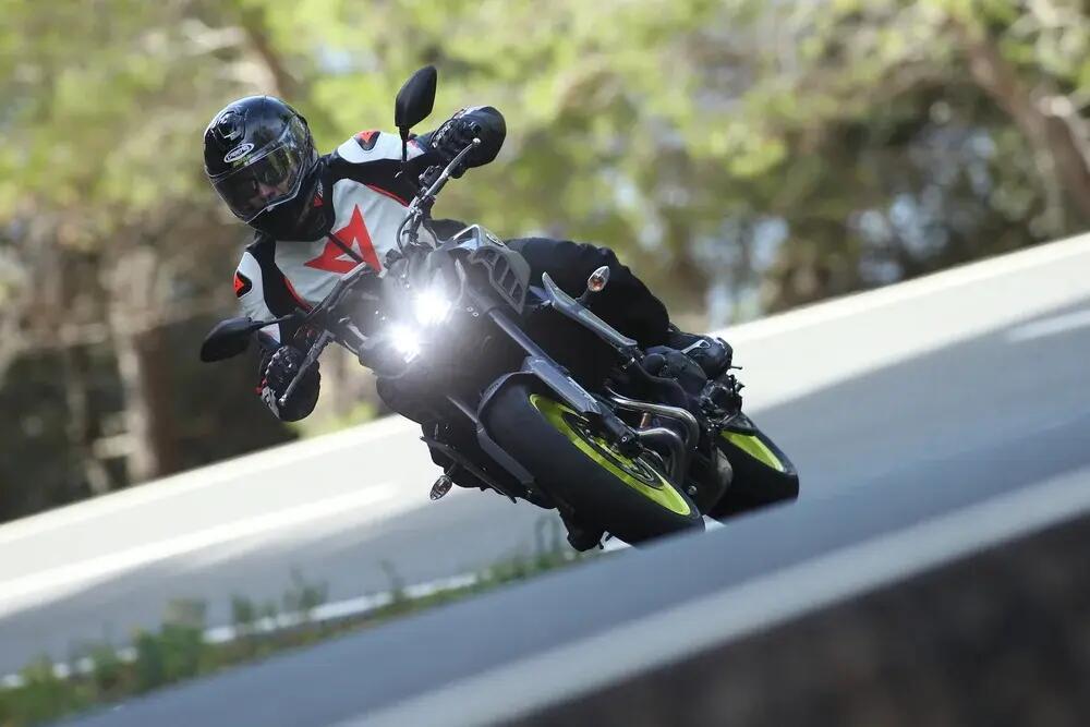 L'adozione della piattaforma IMU ha permesso di affinare e arricchire i controlli dinamici della MT-09, la funzione Cornering per l'ABS, il controllo di trazione più preciso e il controllo anche dello slittamento laterale in curva, fanno fare un passo avanti alla dinamica e soprattutto alla sicurezza. Non manca il Lift Control System, che evita le perdite di contatto dell'avantreno durante le accelerazioni più violente, mentre sono disponibili 3 Riding Mode, 2 con parametri predefiniti del TC, Lift e del SCS (slittamento laterale), più uno personalizzabile. Sono invece 4 i D-Modes, le modalità di risposta del motore, più o meno pronte e una della quali, dedicata ai fondi a bassa aderenza, che limita la potenza.