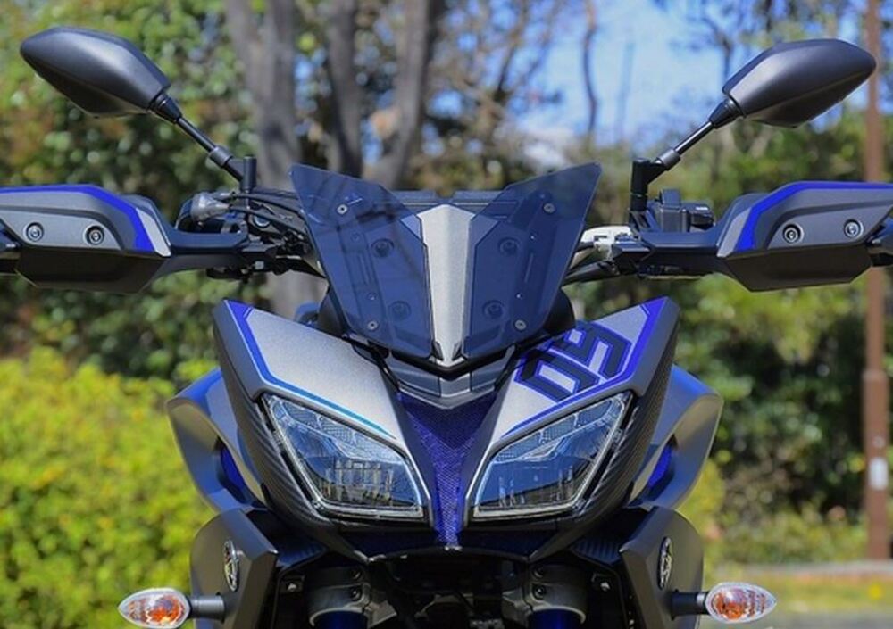 Sparisce il parabrezza alto per lasciare spazio a un piccolo cupolino sopra alla strumentazione, rimangono i paramani e arrivano numerose componenti in fibra di carbonio. Di questo materiale sono realizzati i parafanghi, lo spoiler davanti al tre cilindri in linea, le tabelle portanumero che coprono gli attacchi delle borse laterali e molti altri dettagli. Cambiano le pedane di guida e i relativi comandi a pedale con altri ricavati dal pieno, e ci sono le protezioni laterali per il motore. Un modo semplice e accattivante per offrire una visione più sportiva del concetto Tracer.