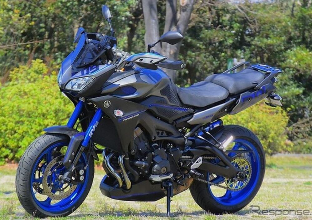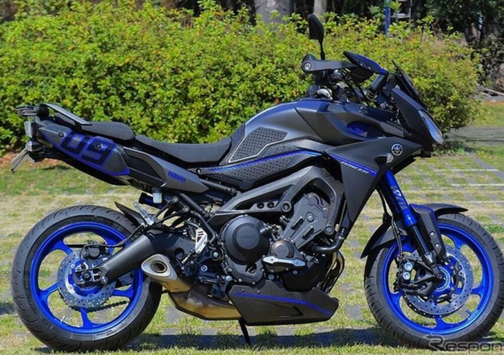 Al Tokyo Motorcycle Show che ha aperto oggi, Yamaha espone una versione speciale della sua MT-09 Tracer. Il modello è stato curato direttamente da Yamaha Motor Company e si sviluppa sulla nuova Tracer; si tratta di una versione da esposizione, ma realizzata con semplici ritocchi cromatici e con accessori già disponibili per essere facilmente replicata. Risaltano la colorazione grigio antracite con finiture blu, e la verniciatura - o trattamento superficiale - sempre in blu per ruote (che sono di diverso disegno), foderi forcella e parti di carrozzeria.