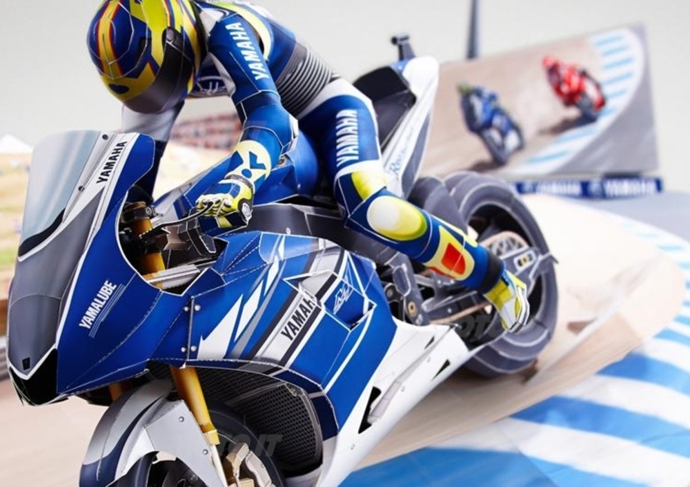 Stavolta Nobutaka Mukouyama, il designer incaricato del progetto Papercraft ad Iwata, ha letteralmente superato sé stesso dando vita - con un anno di lavoro - ad uno spettacolare diorama che riproduce il passaggio fuoripista con cui Valentino Rossi sorpassò Casey Stoner durante la storica gara del 2008. Il designer ha avuto anche l'onore di ricevere i complimenti dal soggetto della sua opera: sul sito Yamaha è presente una breve ricostruzione dell'incontro fra Rossi e Mukouyama, con un divertente scambio di battute in cui i due si raccontano un po'.
