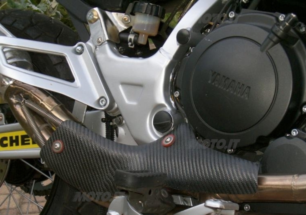 Il motore è stato oggetto di revisione allo scarico, montando collettori in acciaio inox di recupero adattati e saldati ad elettrodo che sfociano in un silenziatore omologato proveniente da una Suzuki GSX-R.