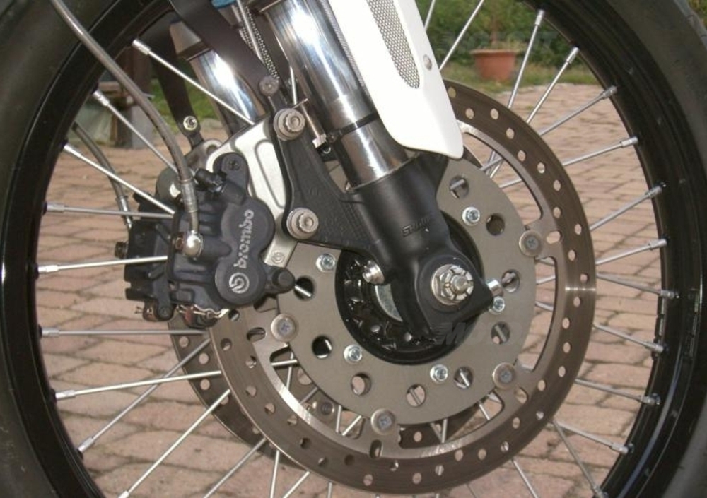 La ciclistica è stata aggiornata con il trapianto di una forcella rovesciata Showa pluriregolabile con steli da 43mm prelevata da una Ducati Multistrada 1000DS. Al retrotreno il mono originale ha lasciato il posto ad un Ohlins anch’esso completamente regolabile, mentre il comparto freni ha visto l’arrivo all’anteriore di un impianto dischi/pinze Brembo da 300mm.